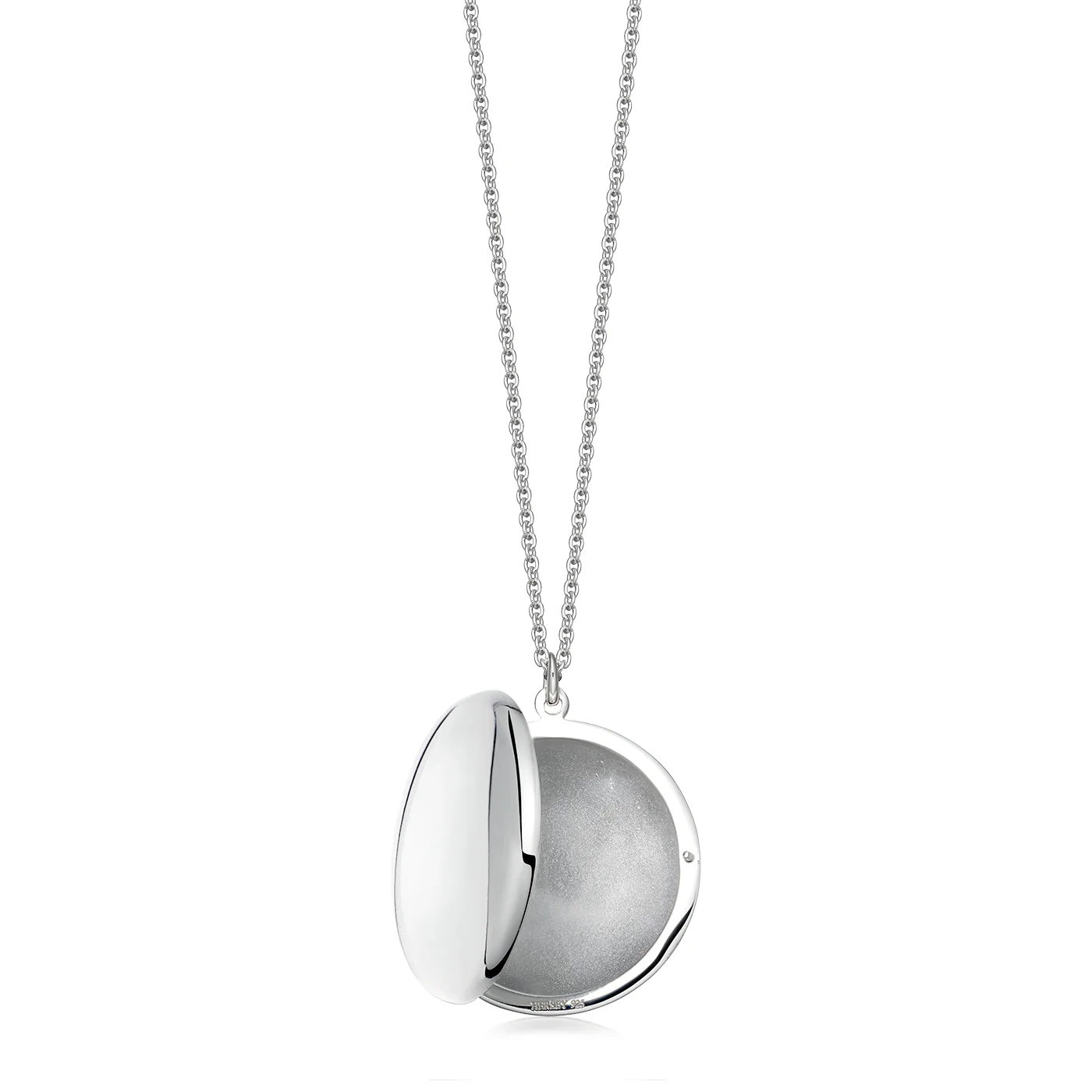 This sterling silver locket measures 28mm in diameter.
