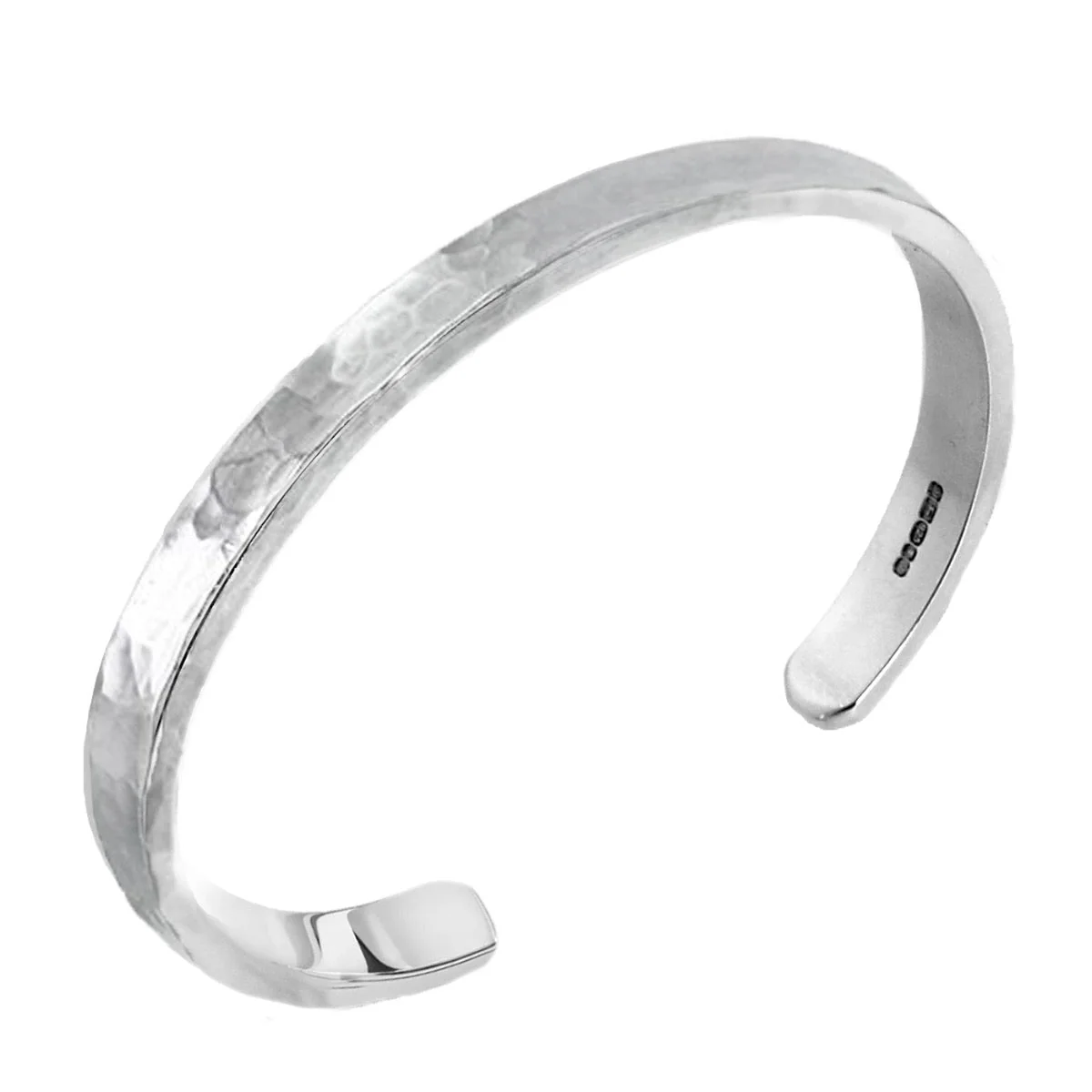Sterling silver bracelet with a hand-beaten finish, designed for everyday wear. Available in four sizes for a comfortable fit.