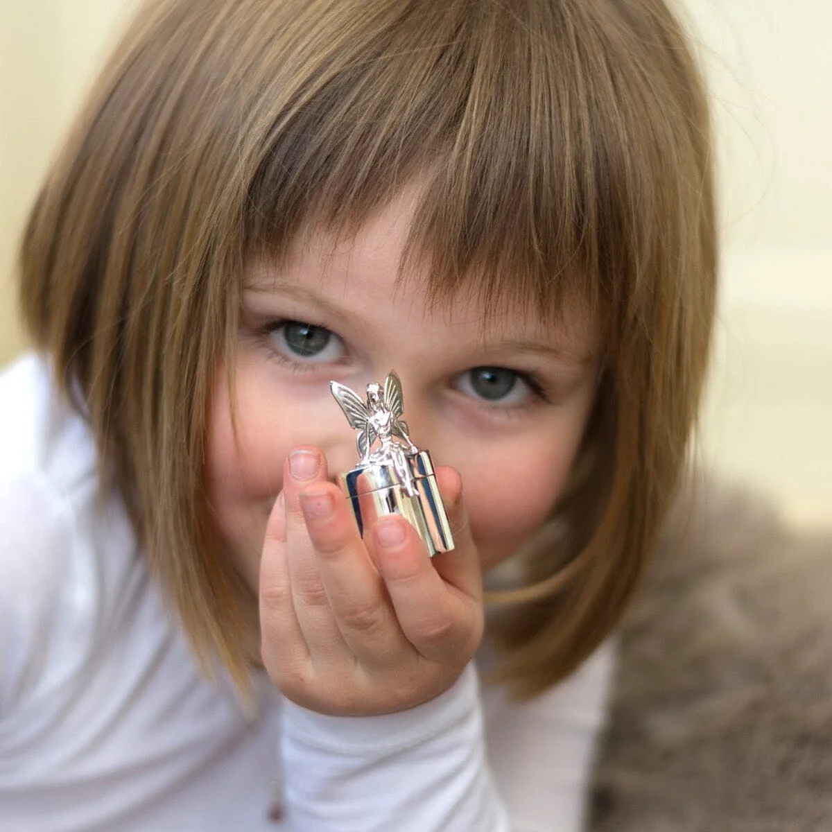 Solid silver tooth box, ideal for marking a child's first tooth. A charming keepsake for the nursery or bedroom.