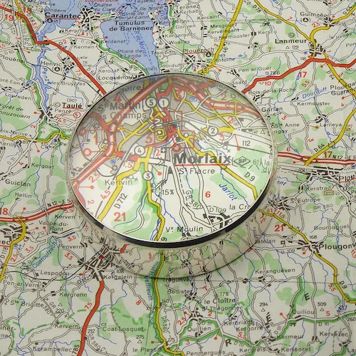 Heavy optical glass paperweight with a sterling silver band, offering 10× magnification.