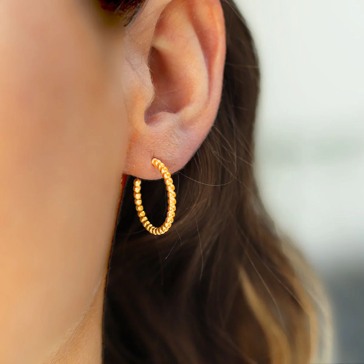 These gold-plated silver earrings are handcrafted to the highest standards using only the finest materials, 925 silver plated with 2.5 microns of 18ct gold, ensuring the durability and longevity of your hoops.