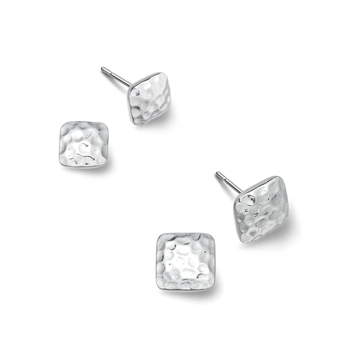 Sterling silver square studs with a hammered finish for a textured, contemporary look. Available in two sizes.