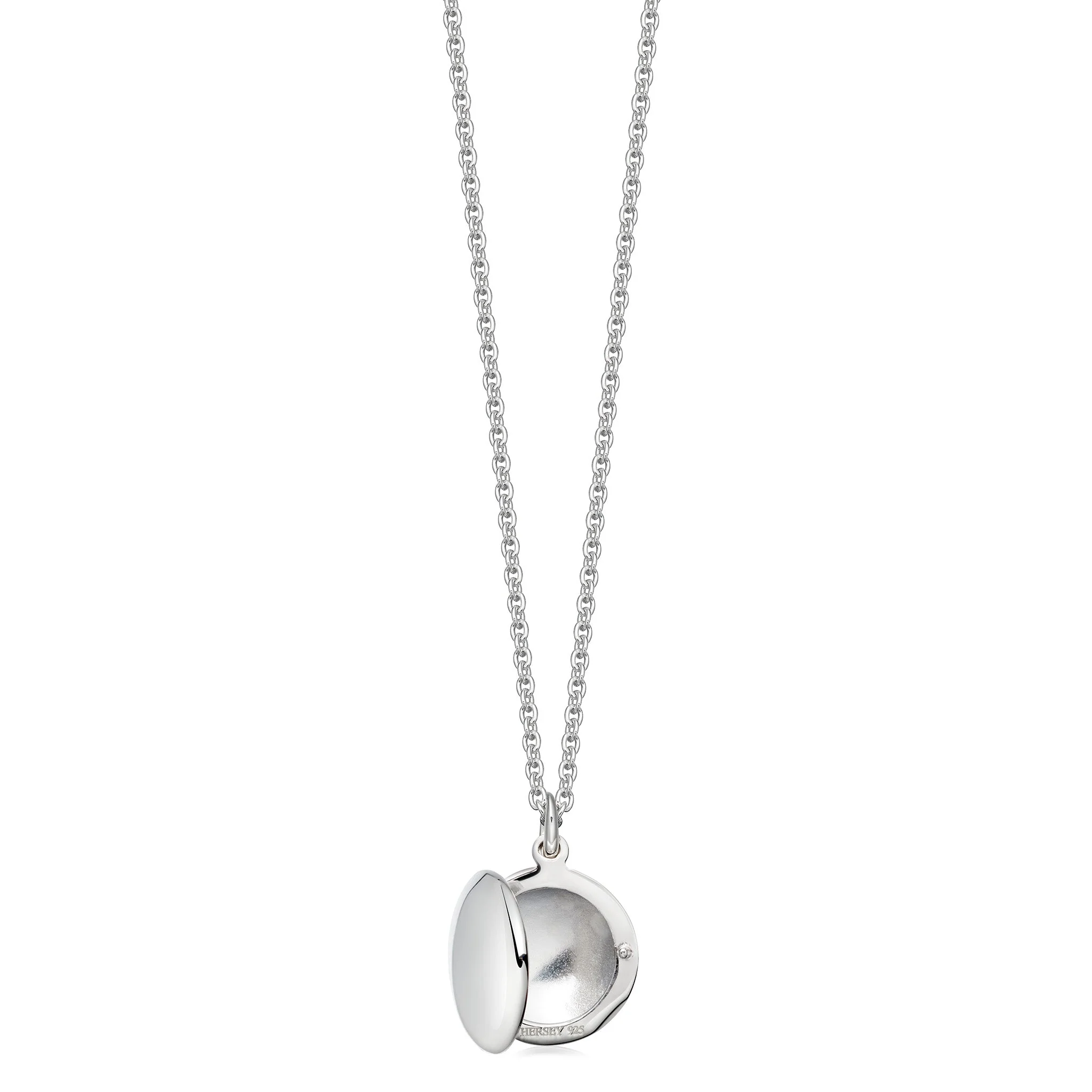 A polished sterling silver locket with a simple round design, suitable for all ages.