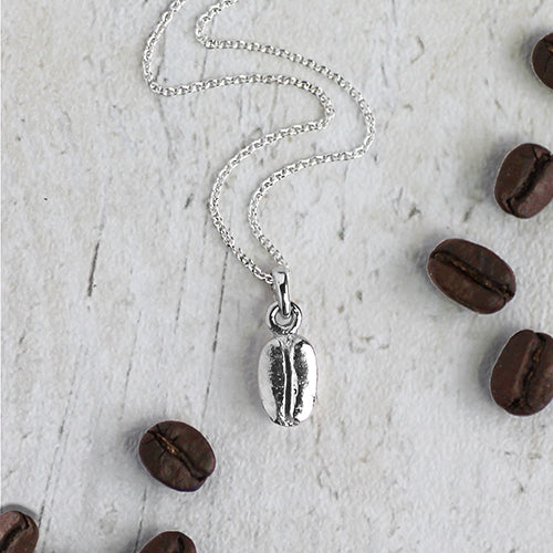 Handcrafted from solid sterling silver, this detailed coffee bean pendant is perfect for coffee lovers and makes a distinctive everyday accessory. Supplied on an adjustable 16–18 inch silver chain.