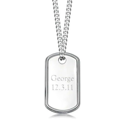Fully hallmarked at the London Assay Office. Tag measures 35mm x 19mm. Choice of silver ball or curb chain in 16", 18", 20", 24", or 28" lengths.