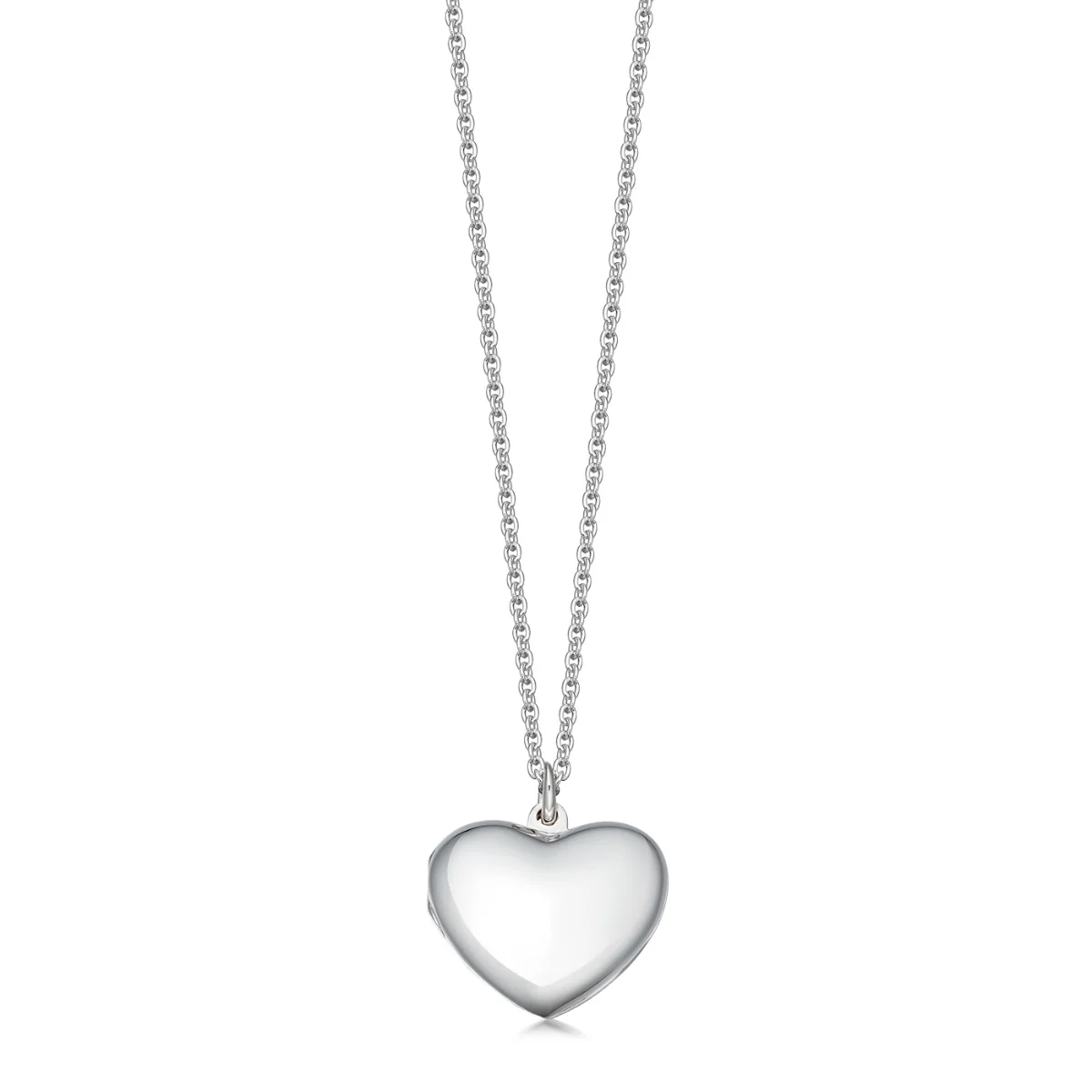 Solid sterling silver heart-shaped locket measuring 19mm wide and 16.5mm high with a polished finish.